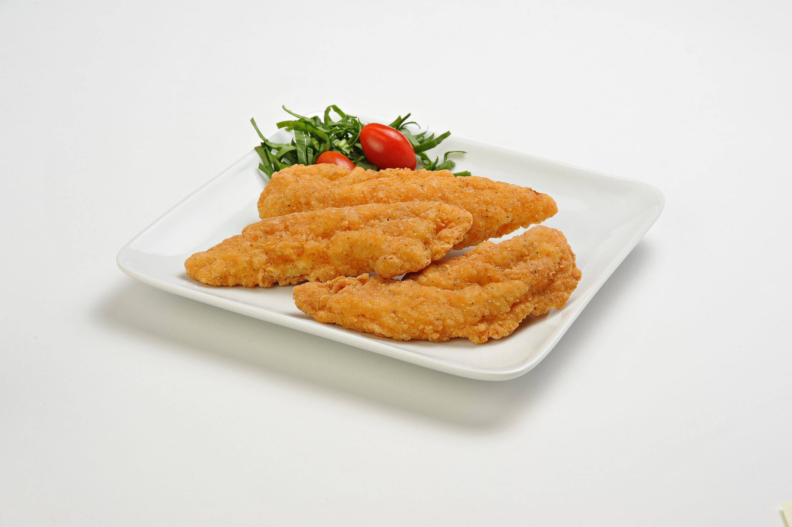 Uncooked Golden Crunch (flat) Breaded (par-fried) Chicken Tenderloin Fritters IF (60-80 count) packed 2/5 lb. bags.